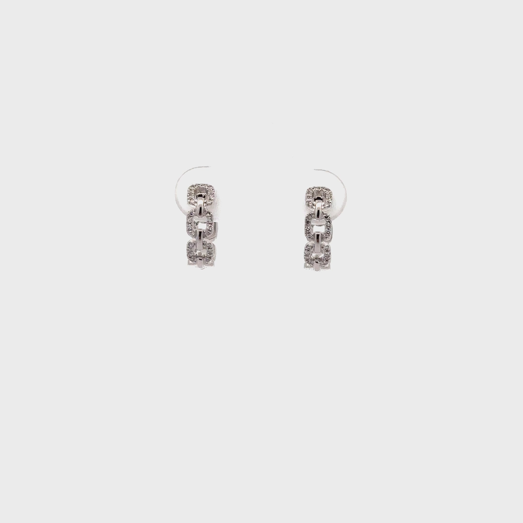 WD1269 14kt gold chain link huggie hoop with pave diamond detail