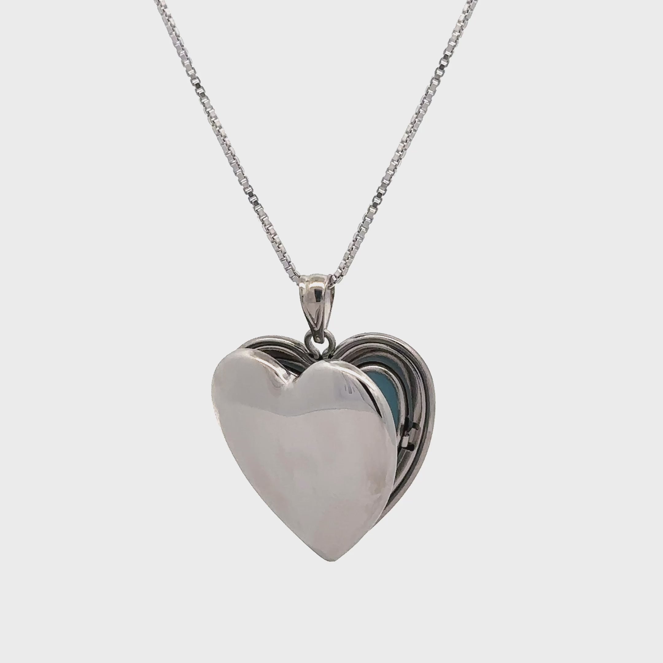 Capture memories with this exquisite heart shaped locket necklace. Crafted from silver with rhodium finish, this timeless piece opens to reveal space for cherished photos or mementos. Suspended on a delicate chain, it's a sentimental keepsake to hold close to your heart.