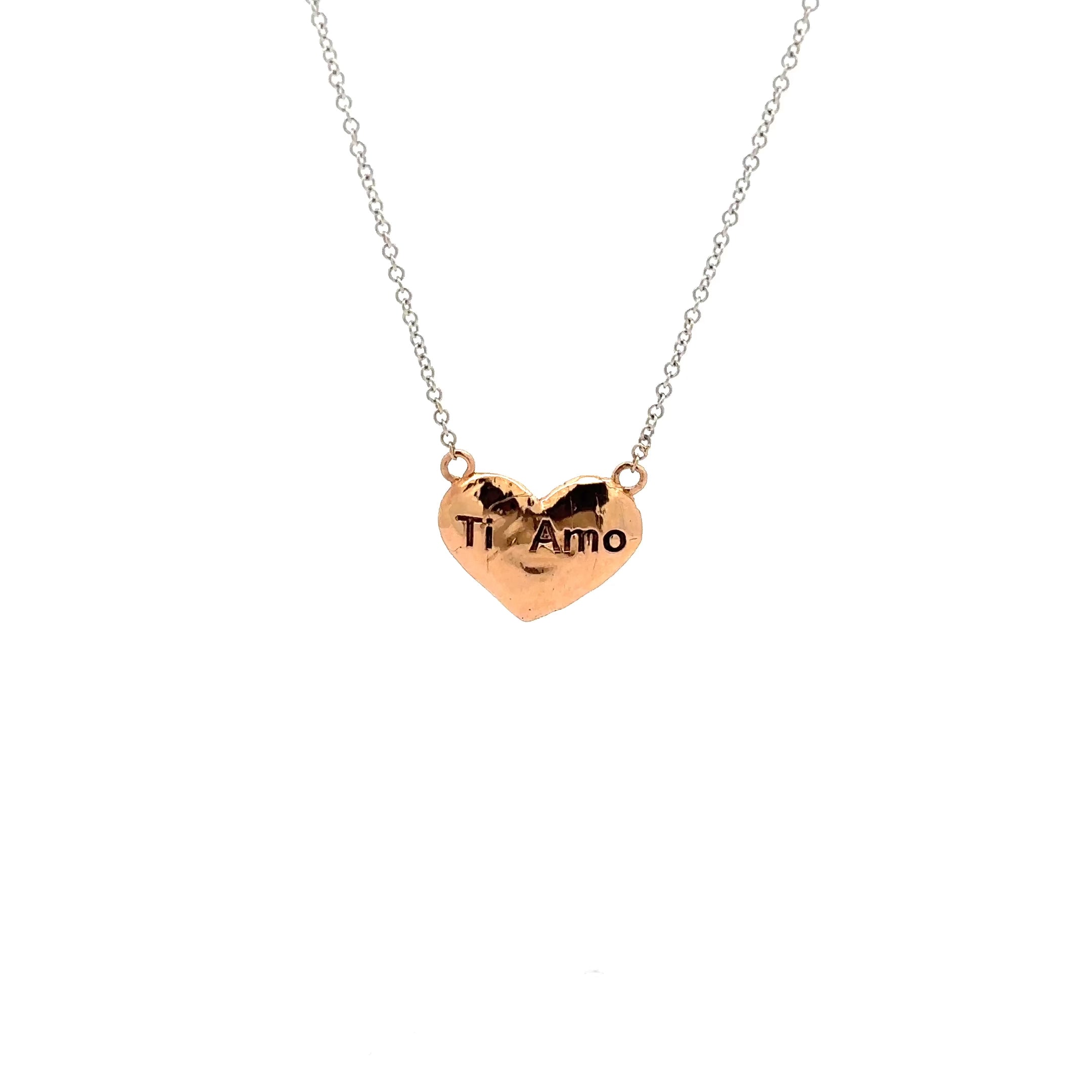A great way to say I love You! Our Ti Amo heart is handcrafted in 14kt gold and fixed to a delicate 18" link chain that has a loop at 16". A sweet gift for yourself or someone special.