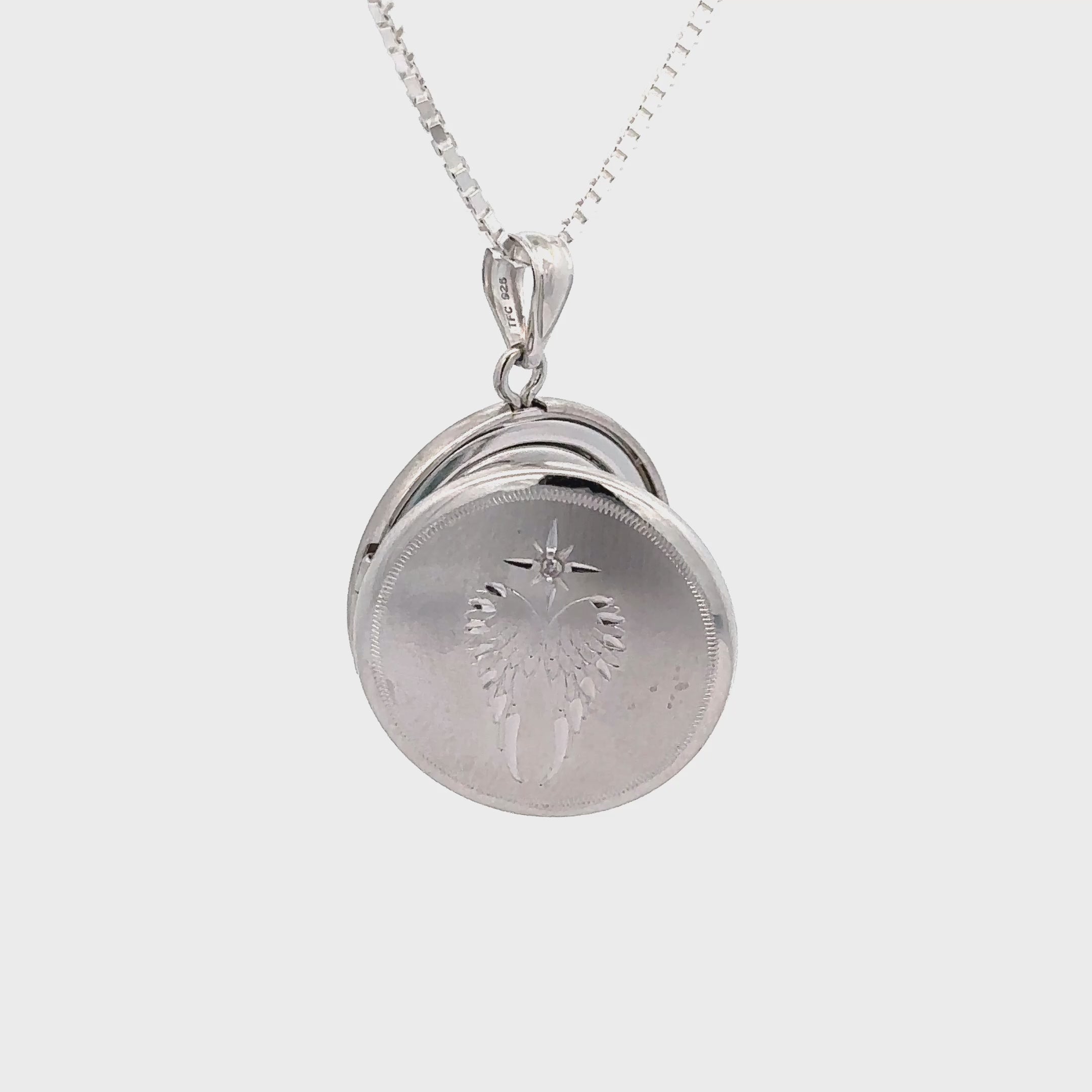 SSGLR20300H Sterling Silver Angel Wing Engraved Locket
