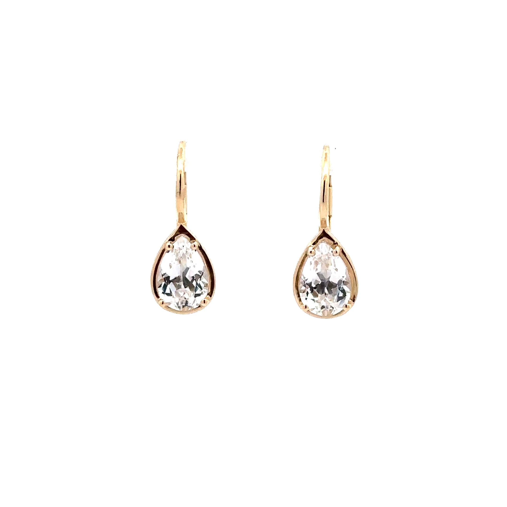 WD 1347 14KT Gold Pear Shaped White Topaz Earrings