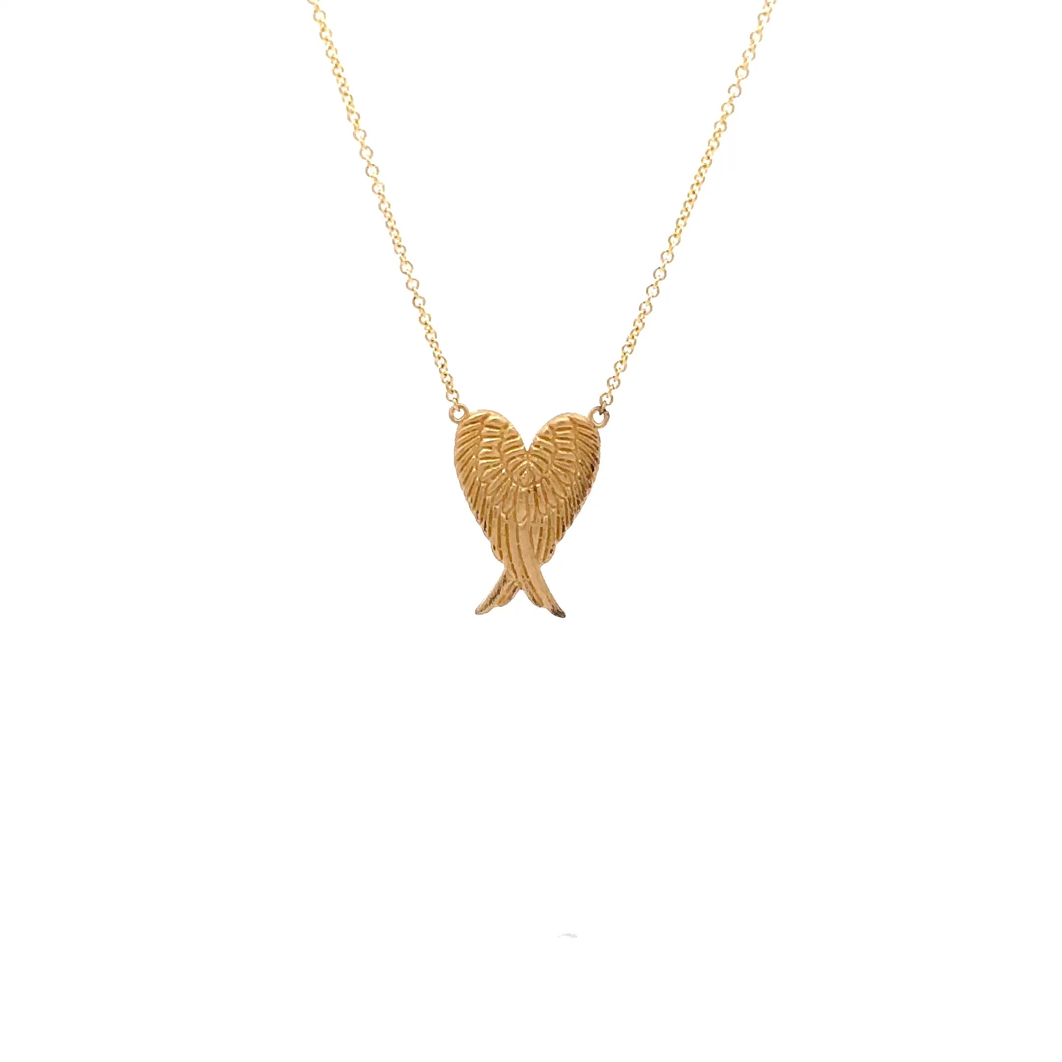 14kt Heart Shaped Angel wings attach 18inch chain with loop at 16inch. Wear it alone or pair with 5 heart necklace. Layer it up! And of course a perfect gift for any occusation.