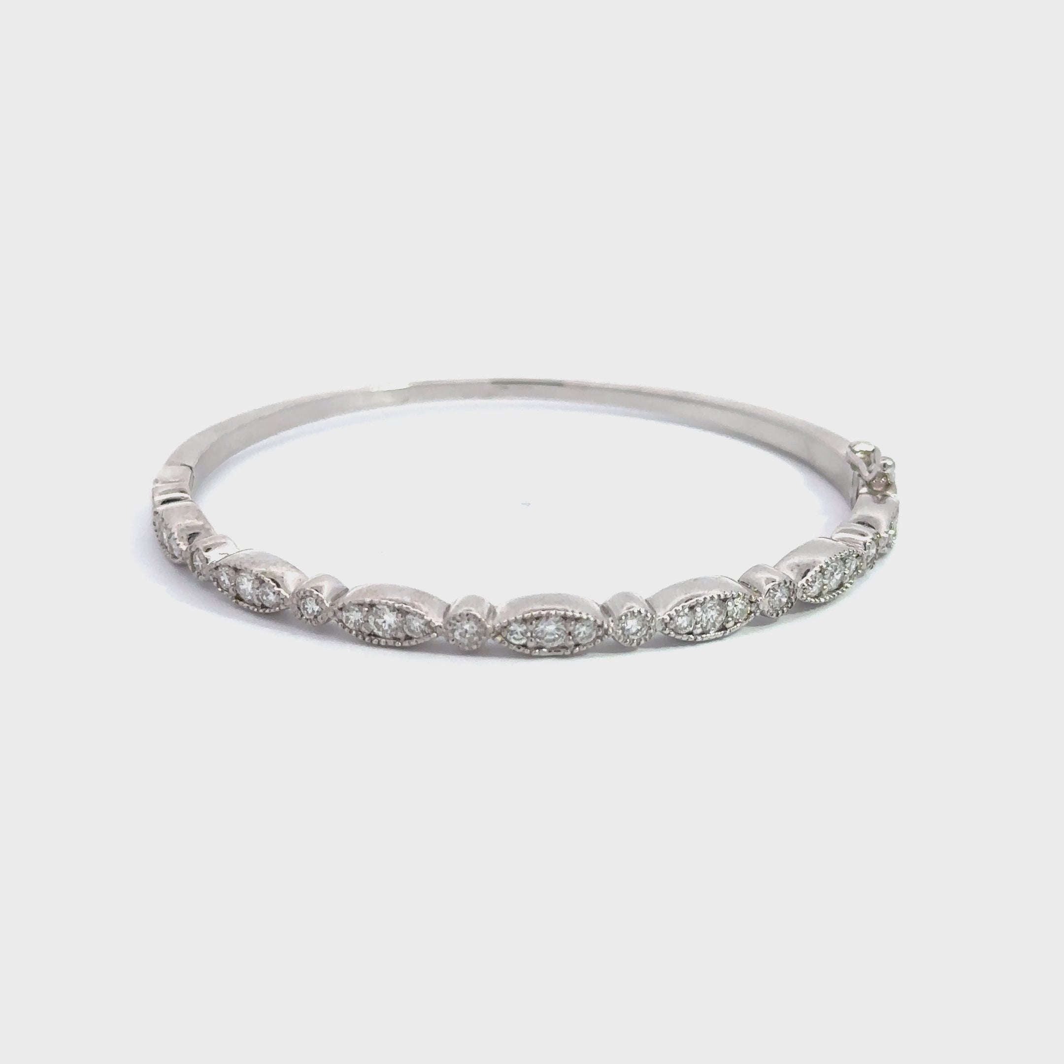 WD1073 14kt Marquise and Round Diamond Cuff Bangle