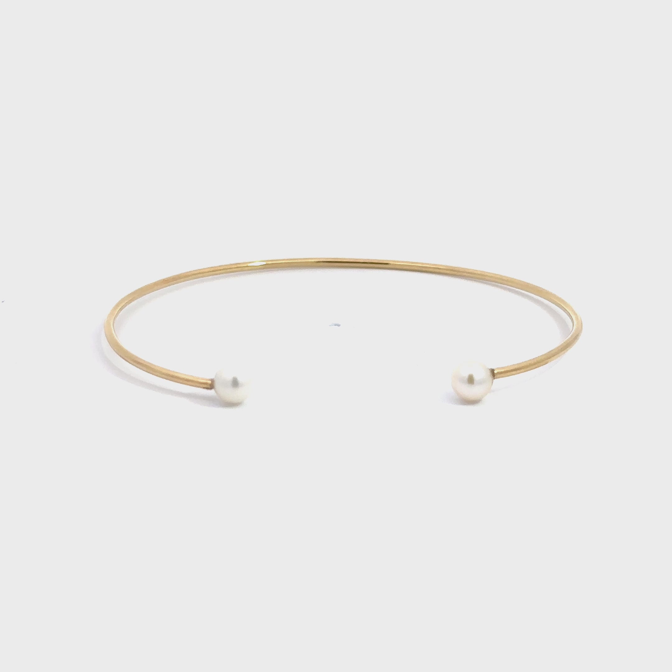 Introducing our exquisite 14kt gold 5mm pearl cuff, a true testament to sophistication and elegance. Crafted with utmost precision, this breathtaking piece will undoubtedly captivate the hearts of those who appreciate pure luxury. The brilliant yellow gold setting effortlessly accentuates the timeless beauty of pearls, making this cuff a symbol of refined taste.