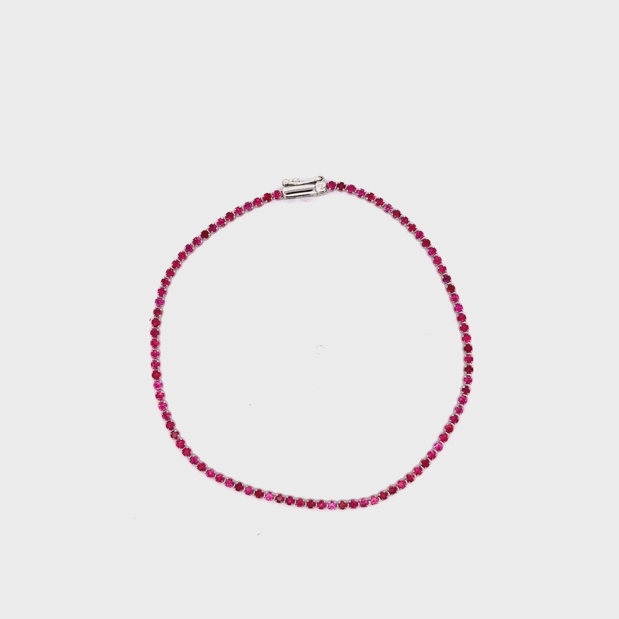 Introducing our stunning 18kt gold Hot Pink Sapphire Tennis Bracelet, the epitome of elegance and luxury. Crafted with precision and passion, this exquisite piece will take your breath away. The bracelet features an enchanting array of dazzling hot pink sapphires, each carefully selected for its breathtaking beauty and intense color.