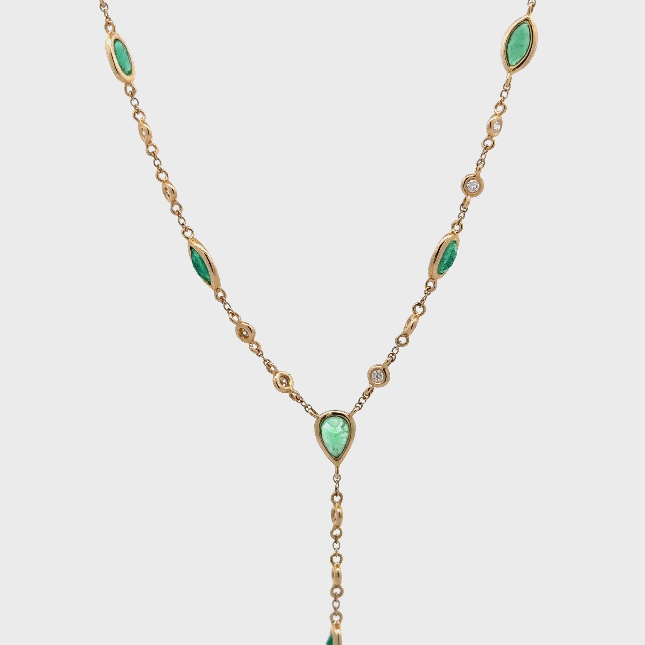 WD1250 14kt Gold Lariat Necklace with Diamond and Green Emeralds