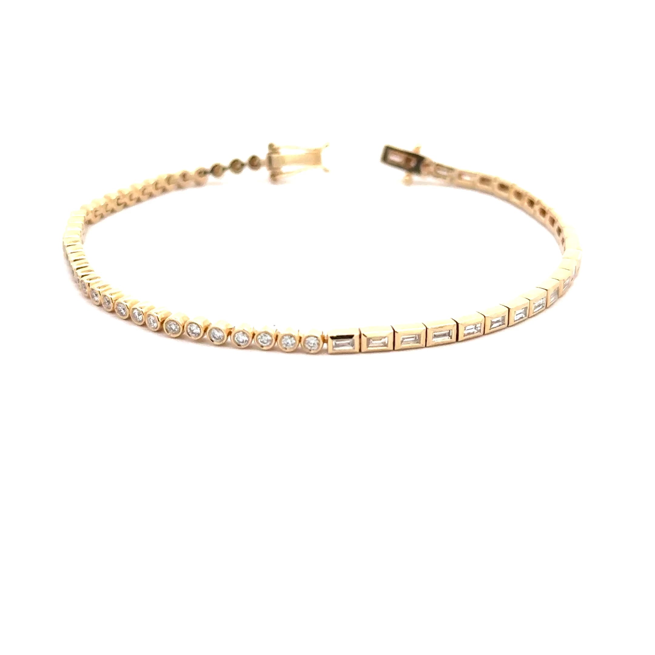 Introducing our exquisite 14 karat gold Emerald and Round Cut diamond bracelet, a captivating piece that exudes elegance and grace.