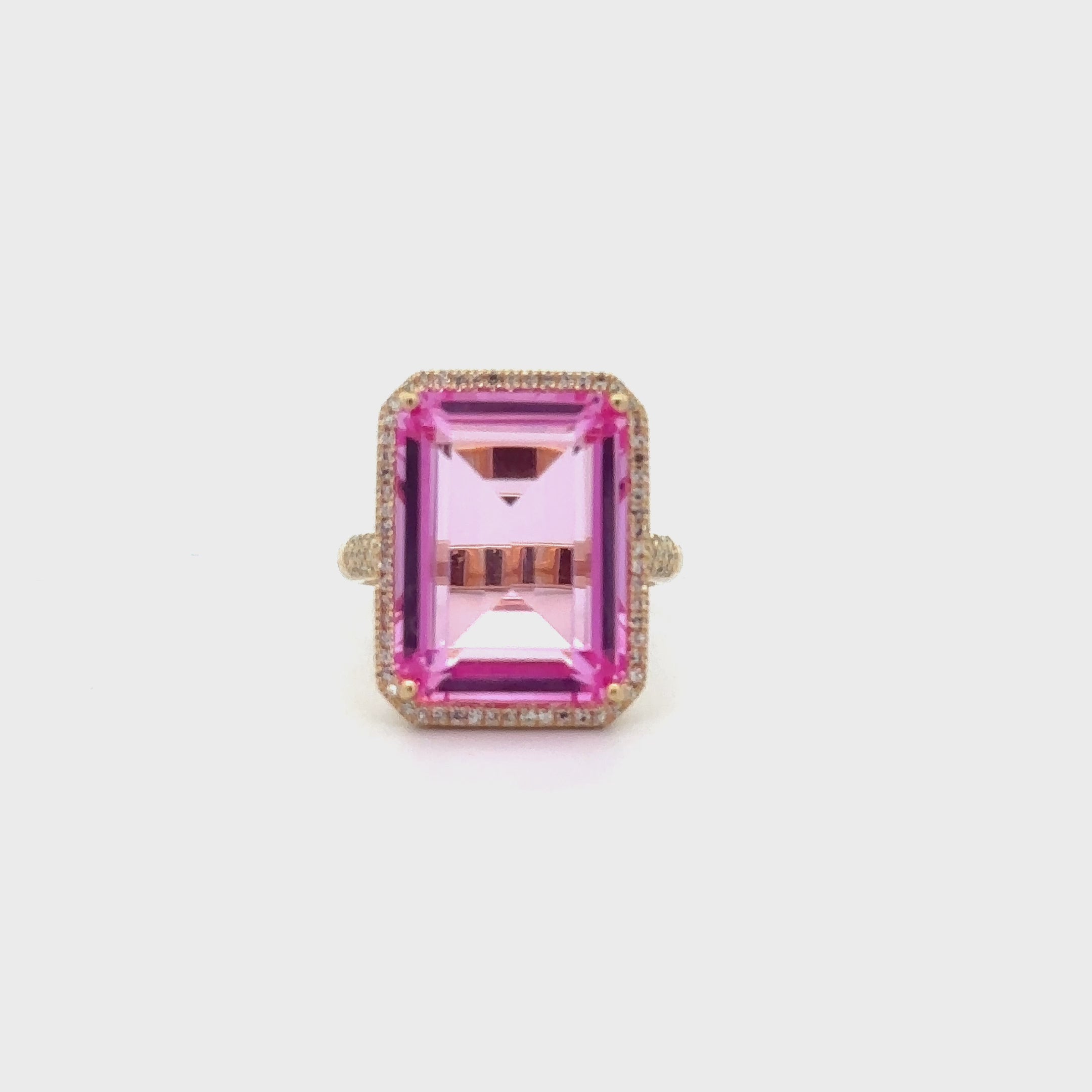 WD1349 14kt Gold Pink Zircon Ring with Diamond Detail and Halo