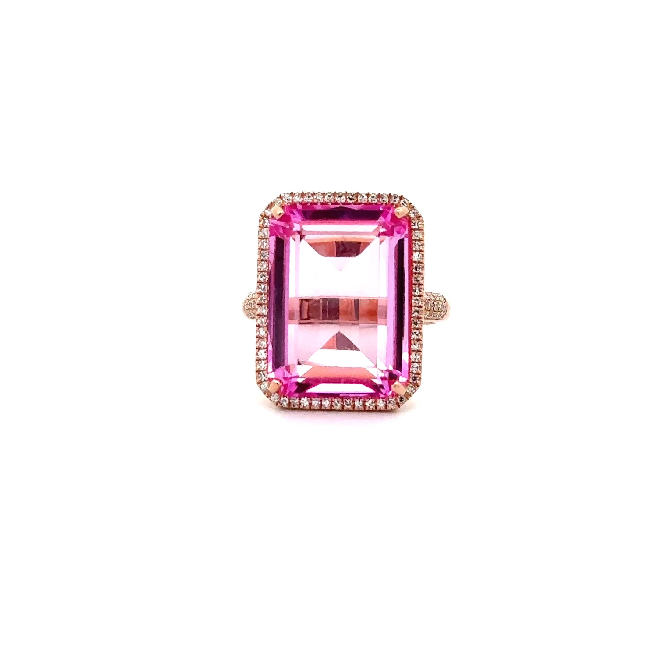 Elevate your jewelry collection with this stunning 14 karat rose gold ring featuring a mesmerizing pink zircon center stone surrounded by a dazzling halo of diamonds. The combination of the warm rose gold setting and the vibrant pink zircon creates a truly enchanting look.