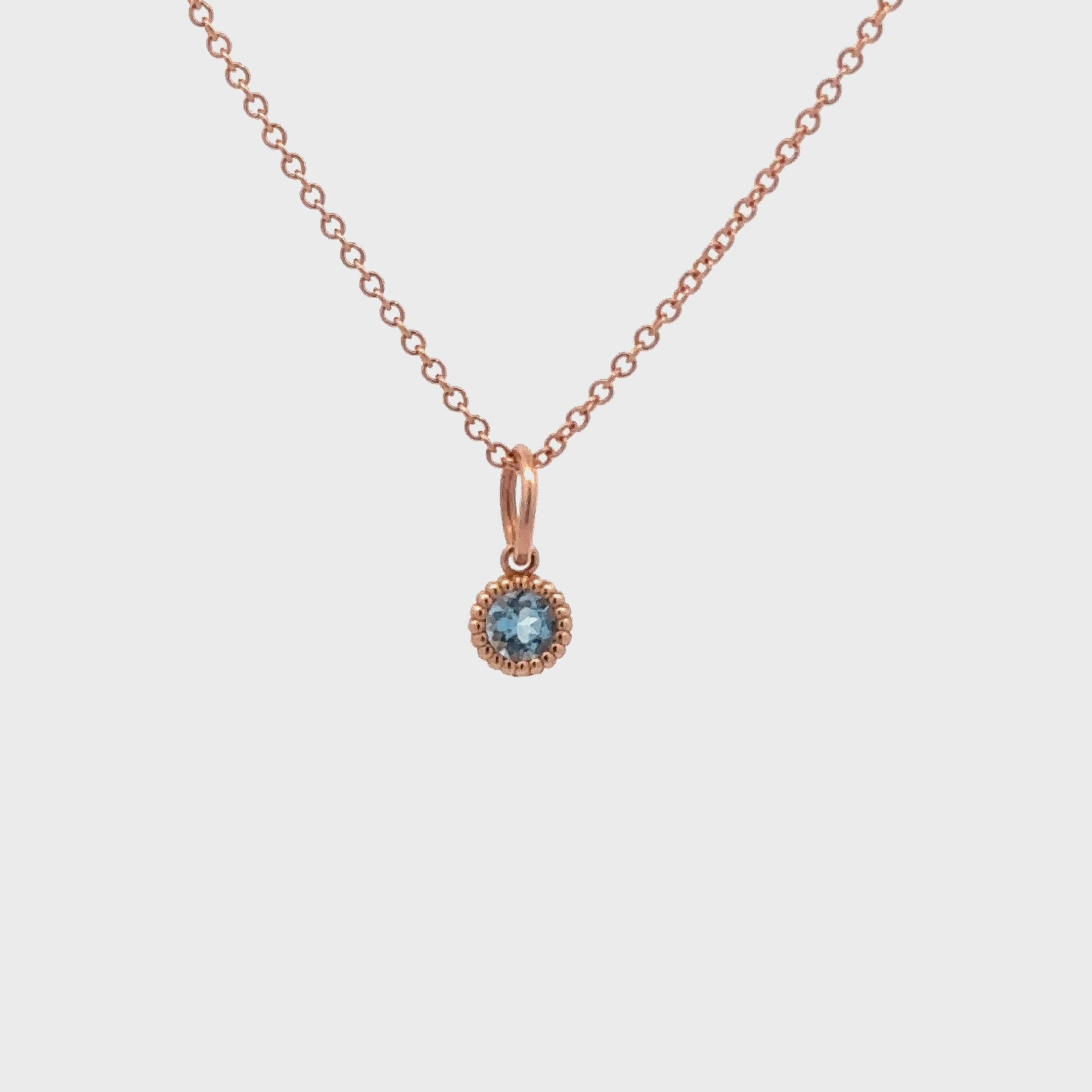 Introducing our stunning 14 karat gold Aquamarine Pebble Charm, the perfect accessory for those born in March or anyone who appreciates the rich Blue hues of this captivating gemstone.This simple little pebble is a 4mm 14kt gold bezel with Aquamarine set in center. Can be worn alone on a chain with other pendants to create your own story. We suggest pairing with the 'La VIta' leaf.