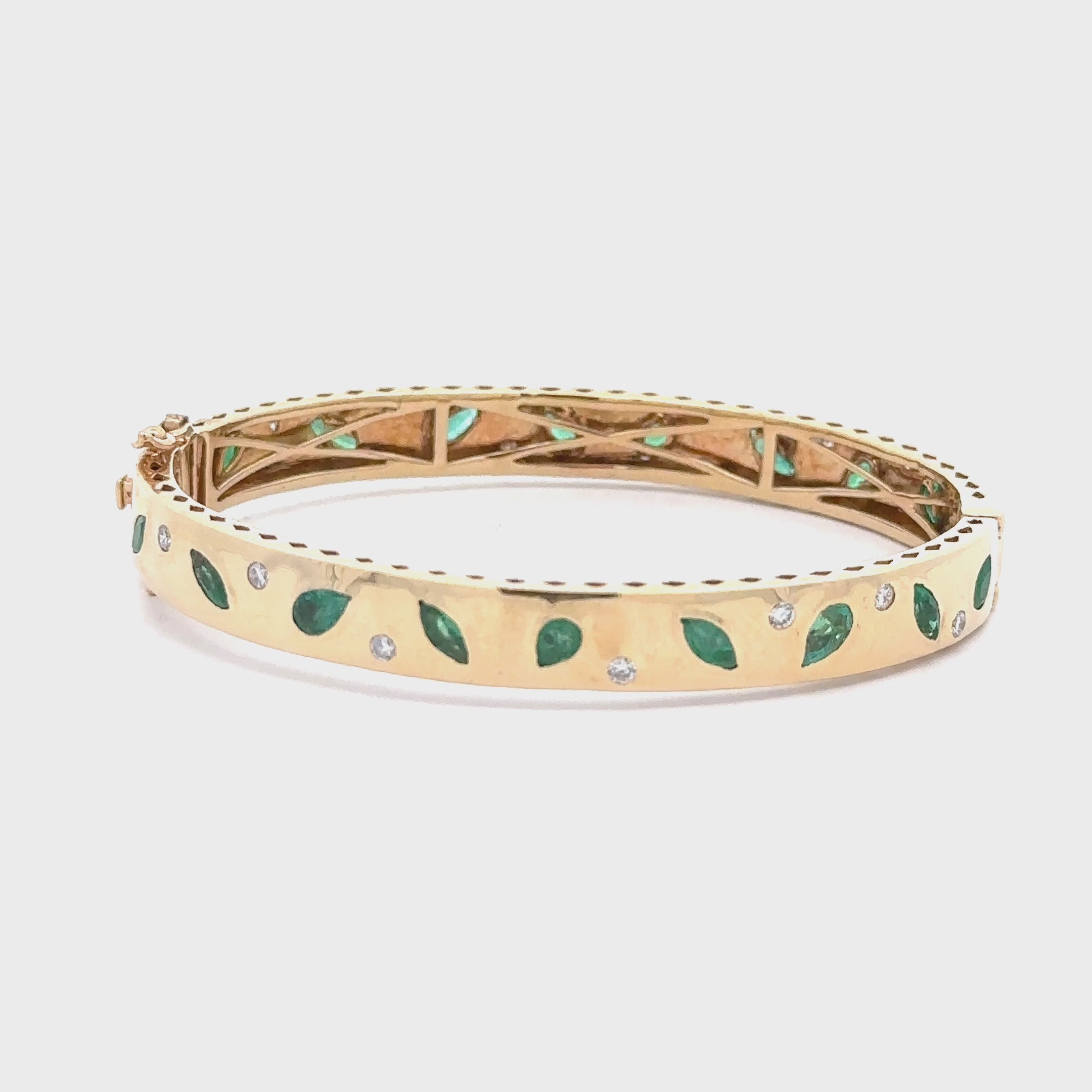 WD1638 14kt Gold Emerald and Green Diamond Bangle