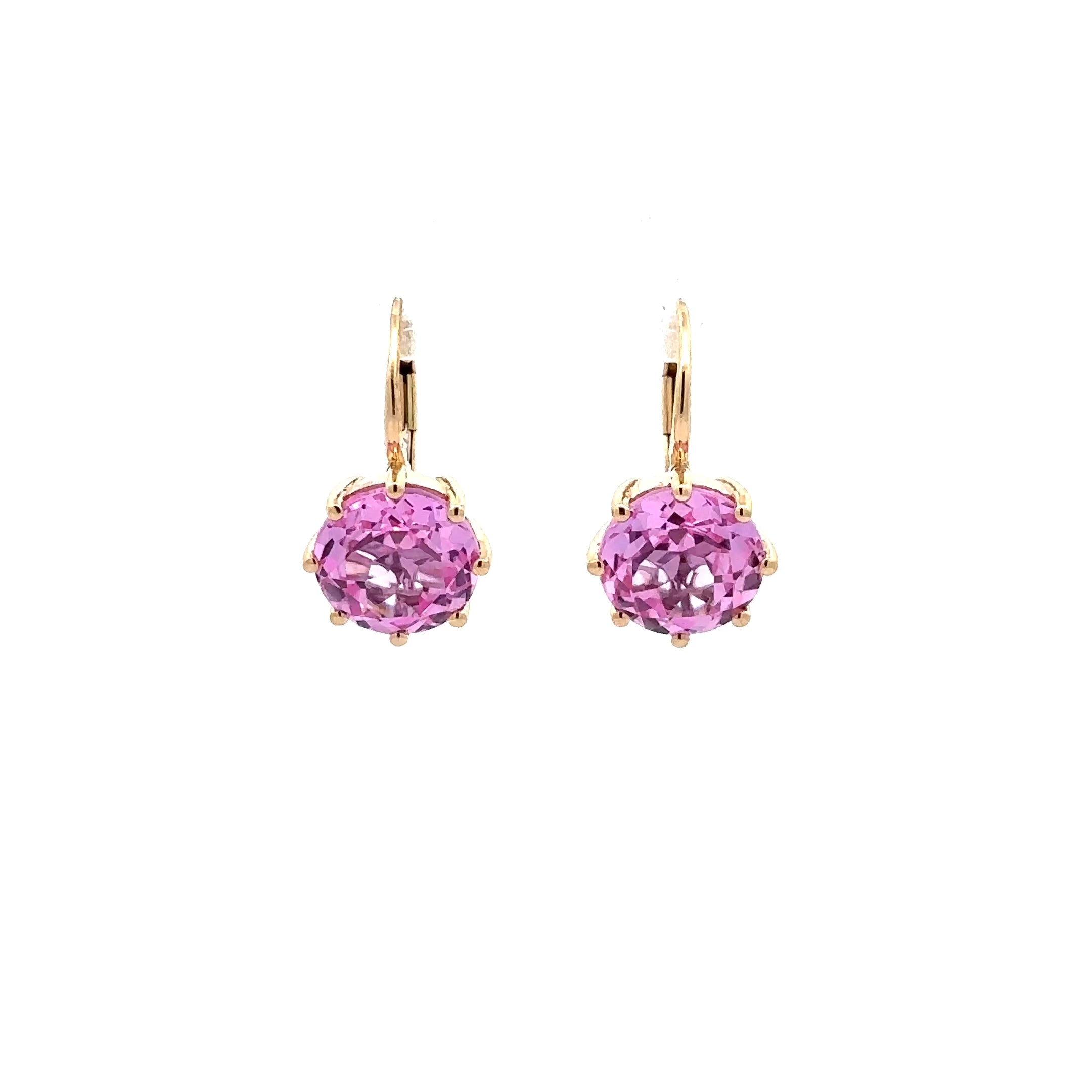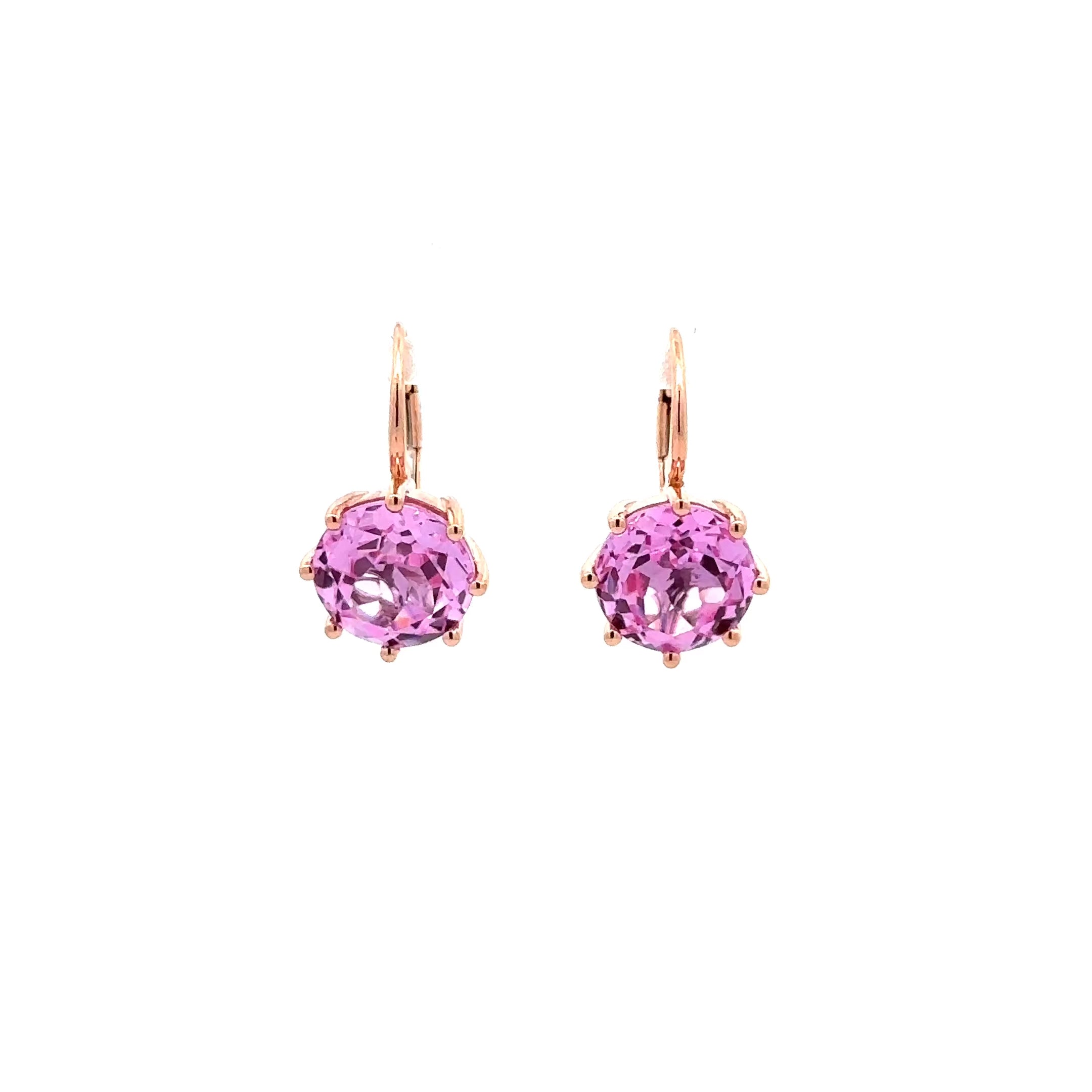 Enhance your elegance with these stunning 14kt round cut pink zircon earrings. The simple yet elegant design features eight prong-set stones that delicately dangle from your ears, creating a captivating and sophisticated look. Add a touch of glamour to any outfit with these exquisite earrings that are sure to leave people speechless.