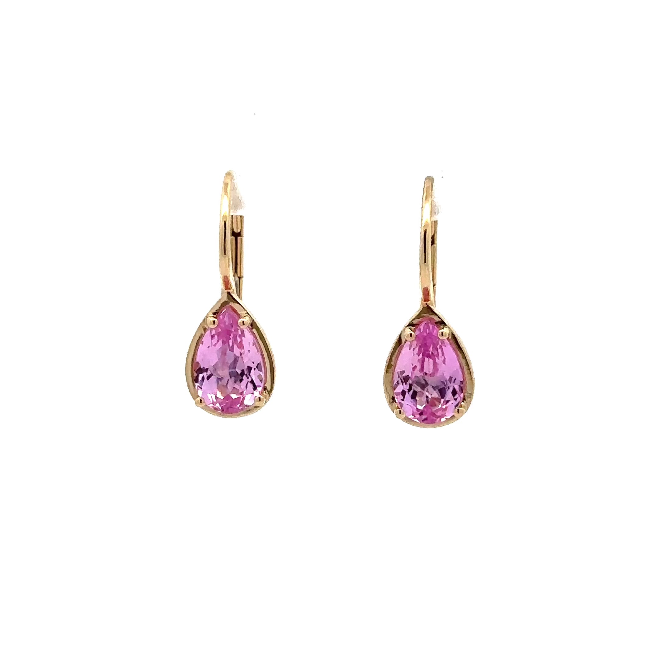 WD1673 14KT GOLD Pear Shaped Pink Zircon Drop Earrings
