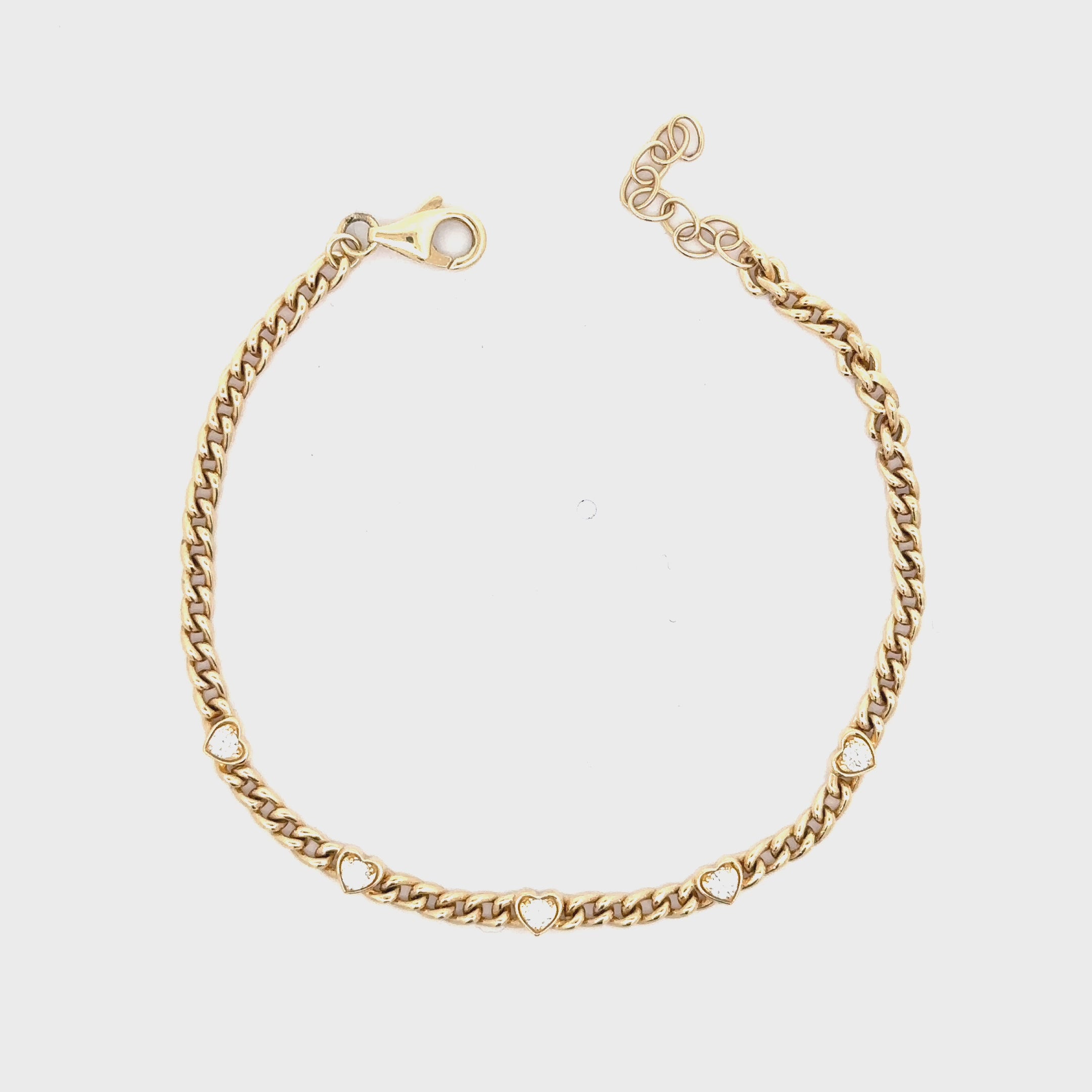 WD1709 14kt Gold Baby Cuban Chain with 5 Diamond Detail Hearts