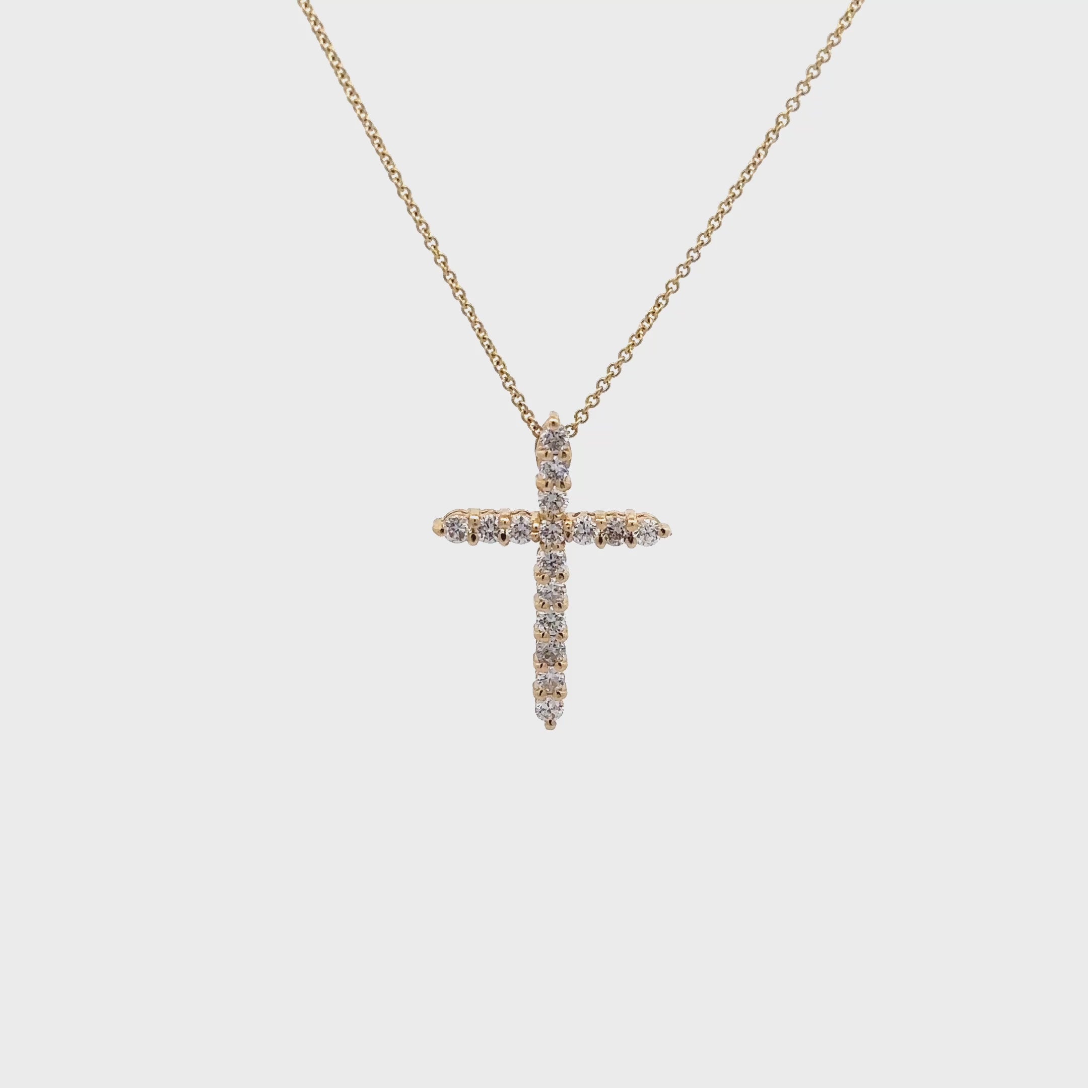 This stunning gold cross pendant is adorned with sparkling diamonds, making it a perfect accessory for any occasion. Its delicate design and radiant shine add a touch of elegance to your outfit, whether you're dressing up for a special event or adding flair to your everyday look.
