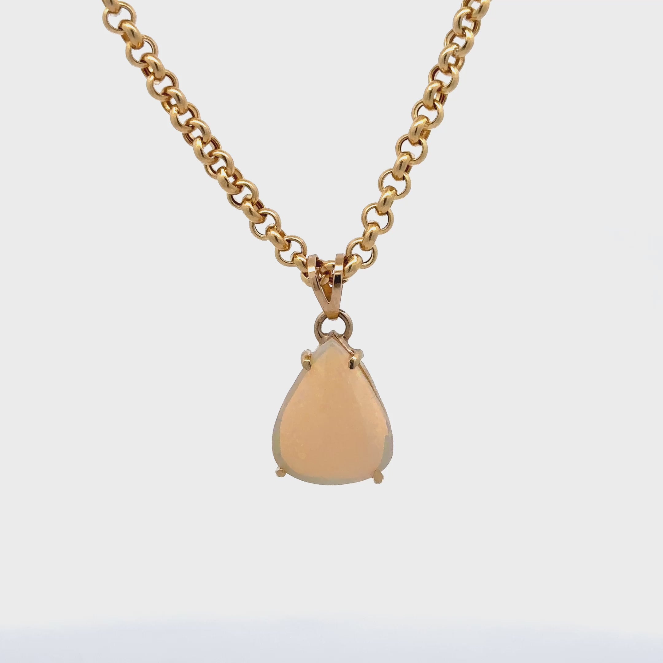 This stunning gold rolo chain necklace features a beautifully crafted teardrop opal pendant that exudes elegance and sophistication. Perfect for both casual and formal occasions, it adds a touch of luxury to any outfit. The intricate chain design complements the pendant, making it a must-have accessory for jewelry lovers.