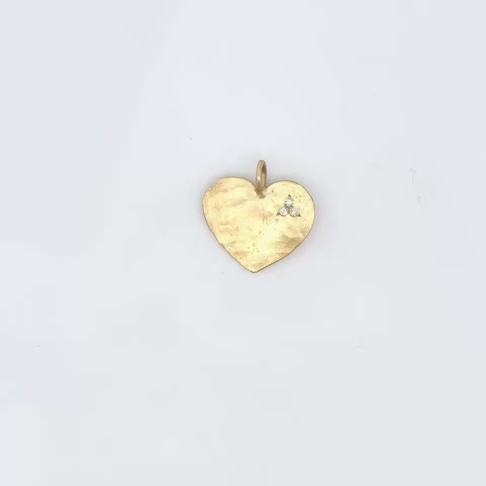 WD1769 14kt Matte Gold Hammered Heart with Diamond Detail Pendant