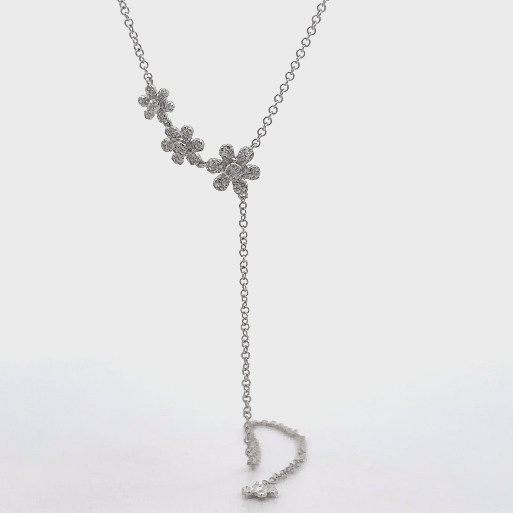 WD1790 14kt Gold Pave Diamond Flower Lariat Necklace