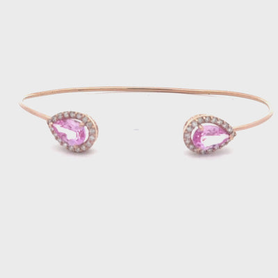 WD1870 14kt Rose Gold Pink Zircon with Diamond Halo Cuff Bracelet