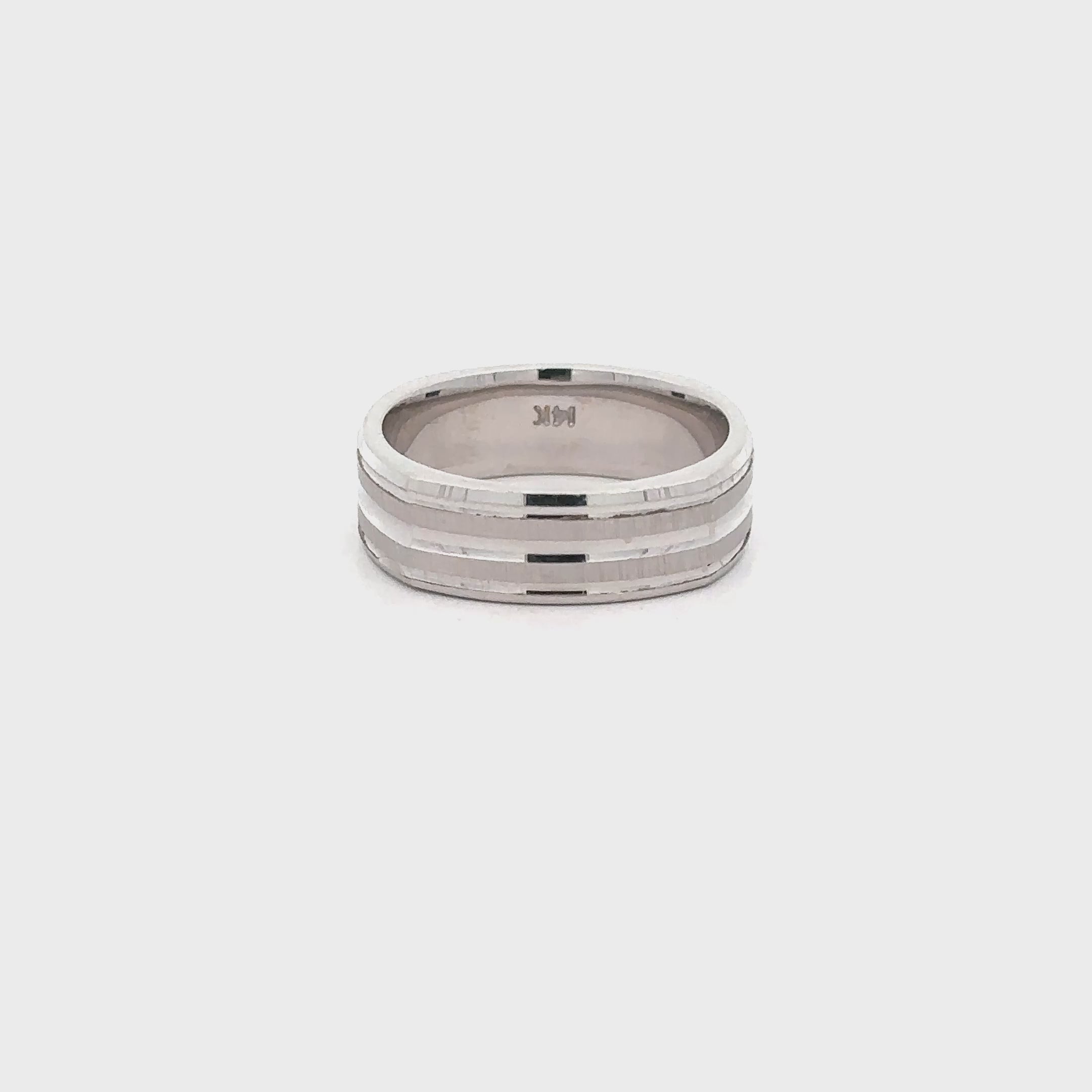 Elevate your style with this sophisticated 14k white gold band ring. Its meticulously crafted parallel grooves add depth and character to the sleek design. Perfect for everyday wear or special occasions, this exquisite piece is a testament to timeless elegance.