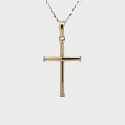 Crafted in radiant yellow gold, the cross pendant showcases a sleek and minimalist design. This exudes understated elegance, perfect for everyday wear or special occasions. A classic symbol of faith and fashion. Cross only. Shown with optional chain.
