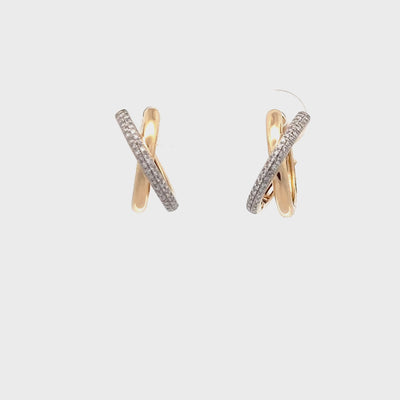WD1887 14kt Yellow Gold Criss Cross Hoop Earring with Pave Set Diamond Detail