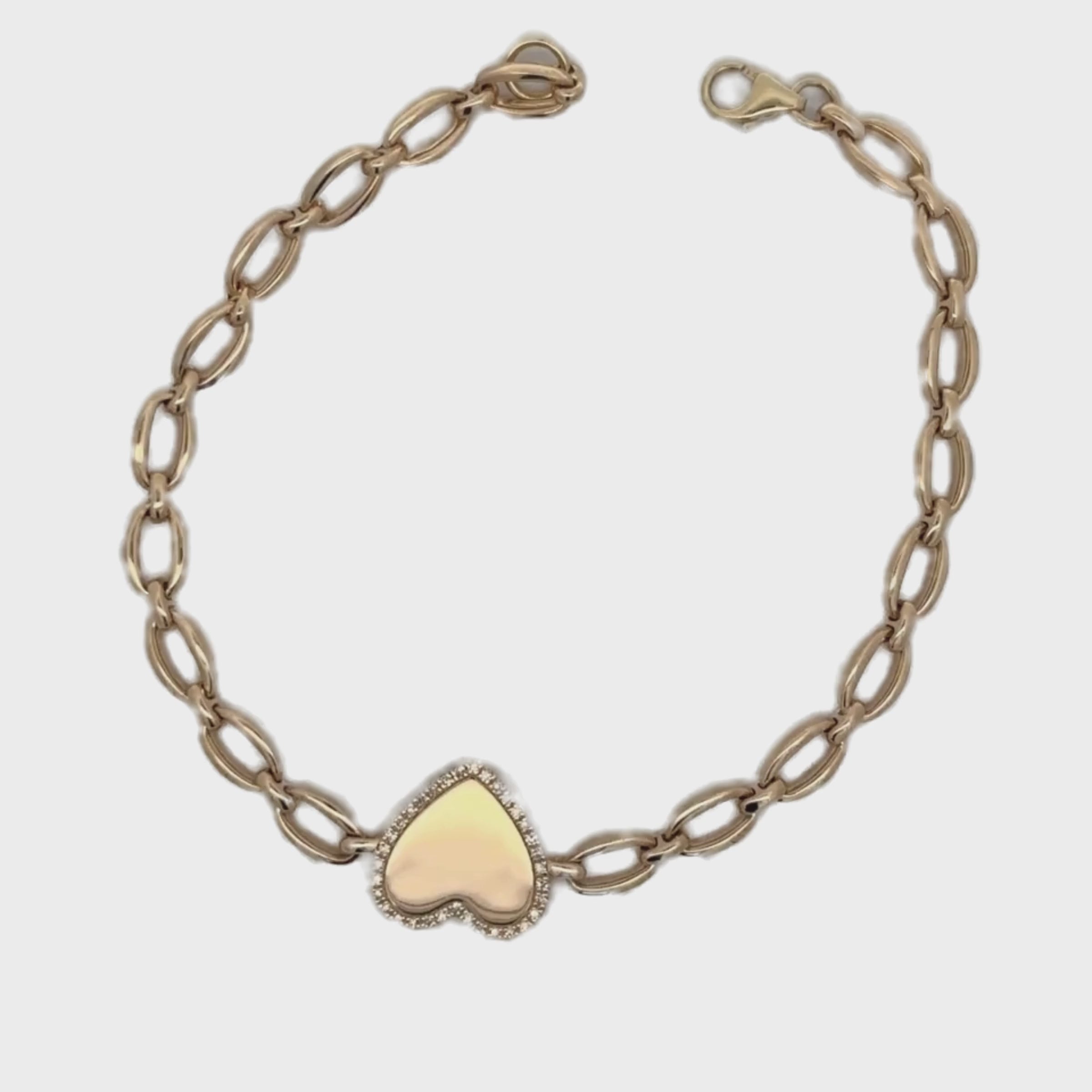 Indulge in the subtle allure of this yellow gold chain bracelet. Crafted from lustrous yellow gold, this chain bracelet features a heart-shaped diamond detailed pendant. Its classic chain design offers timeless elegance, while the diamond offers scintillation.