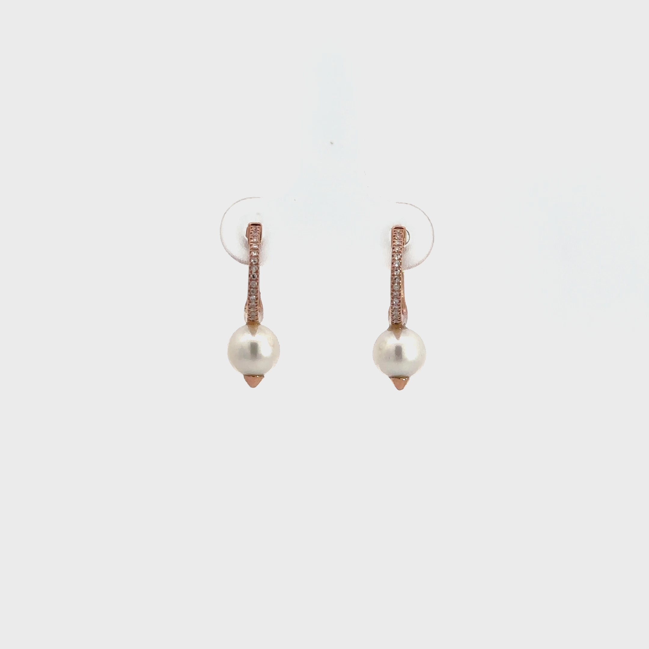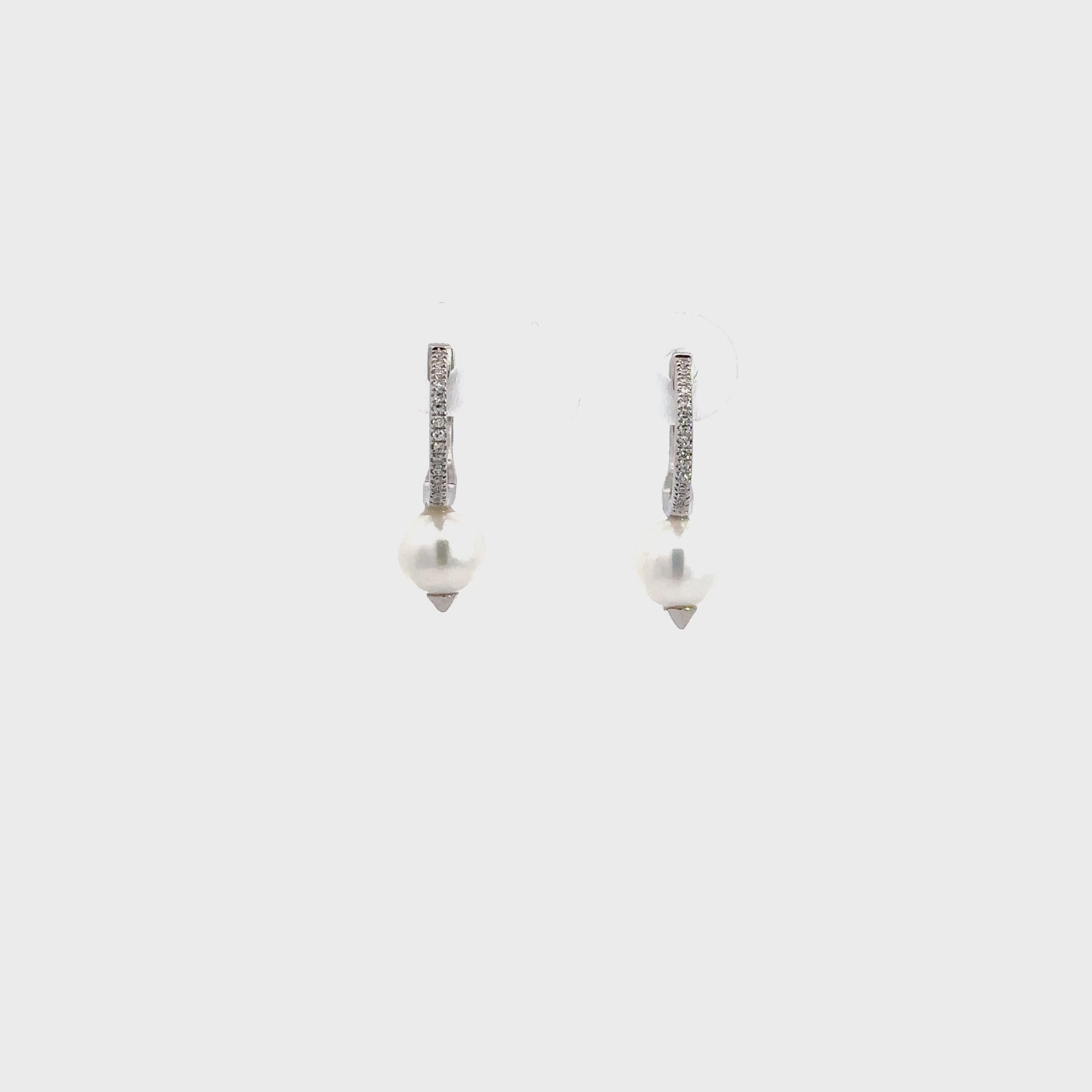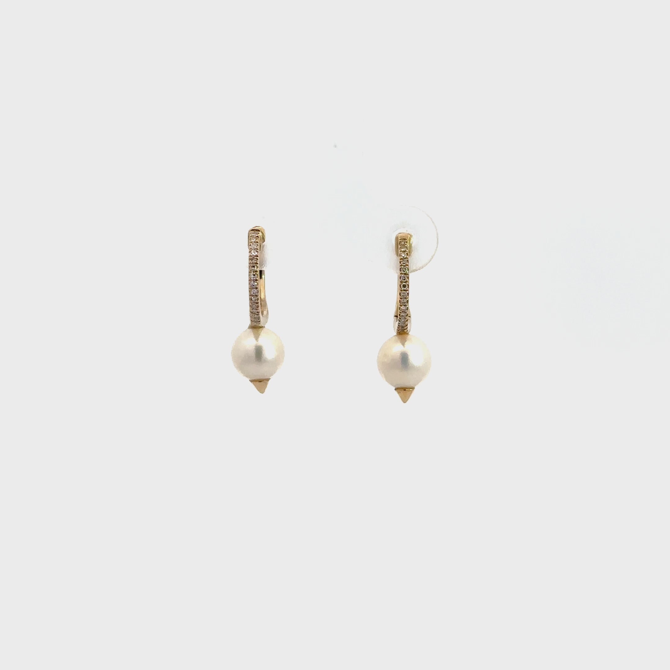 WD694 14kt pave huggie hoop .08ct pearl drop