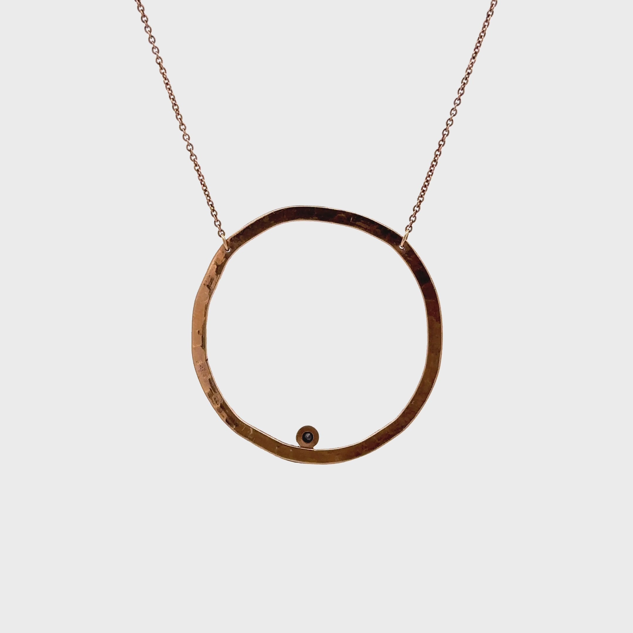 14kt gold Large hammered circle with one bezel diamond necklace.