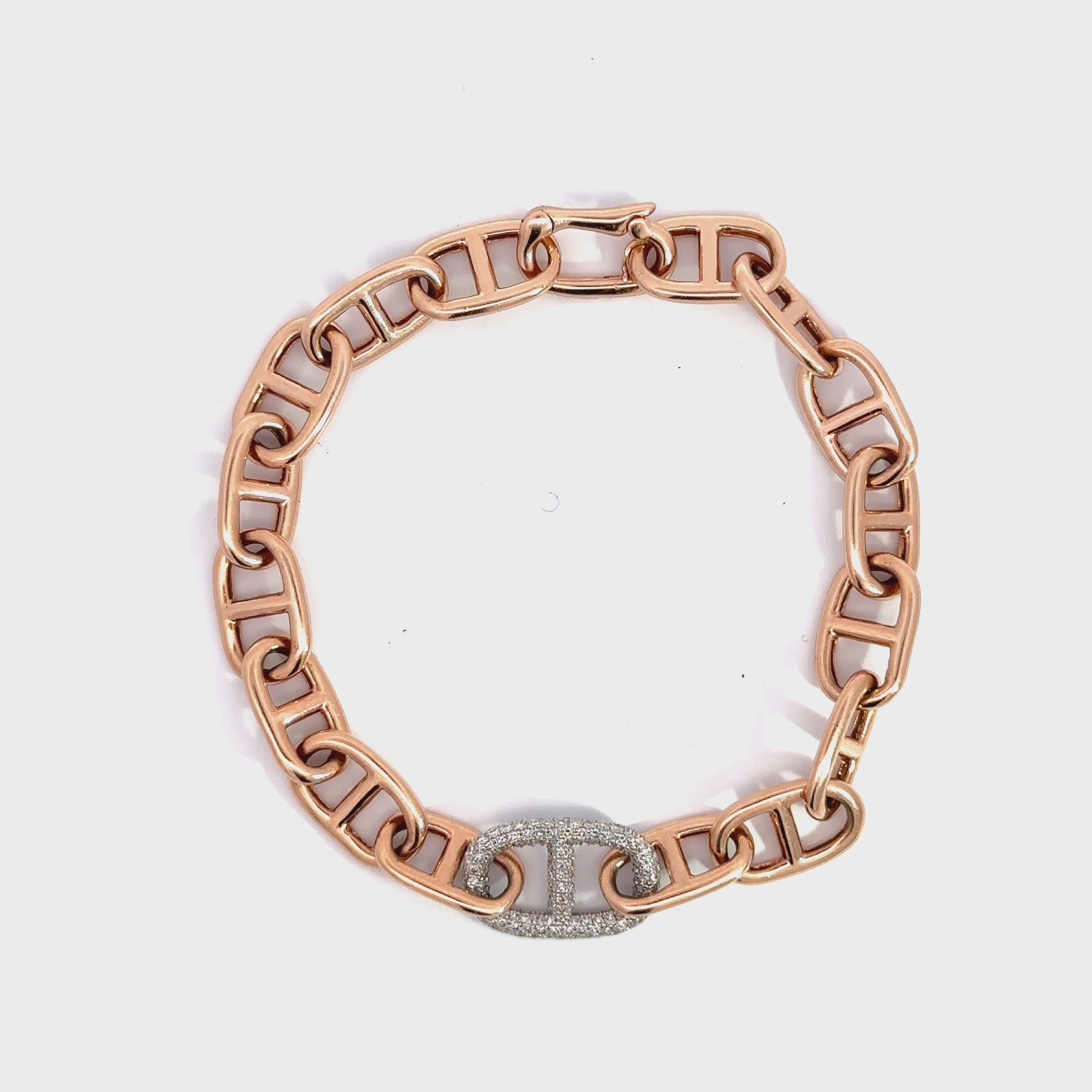 WD750 14kt gold large link with .70ct pave set diamond link in middle bracelet
