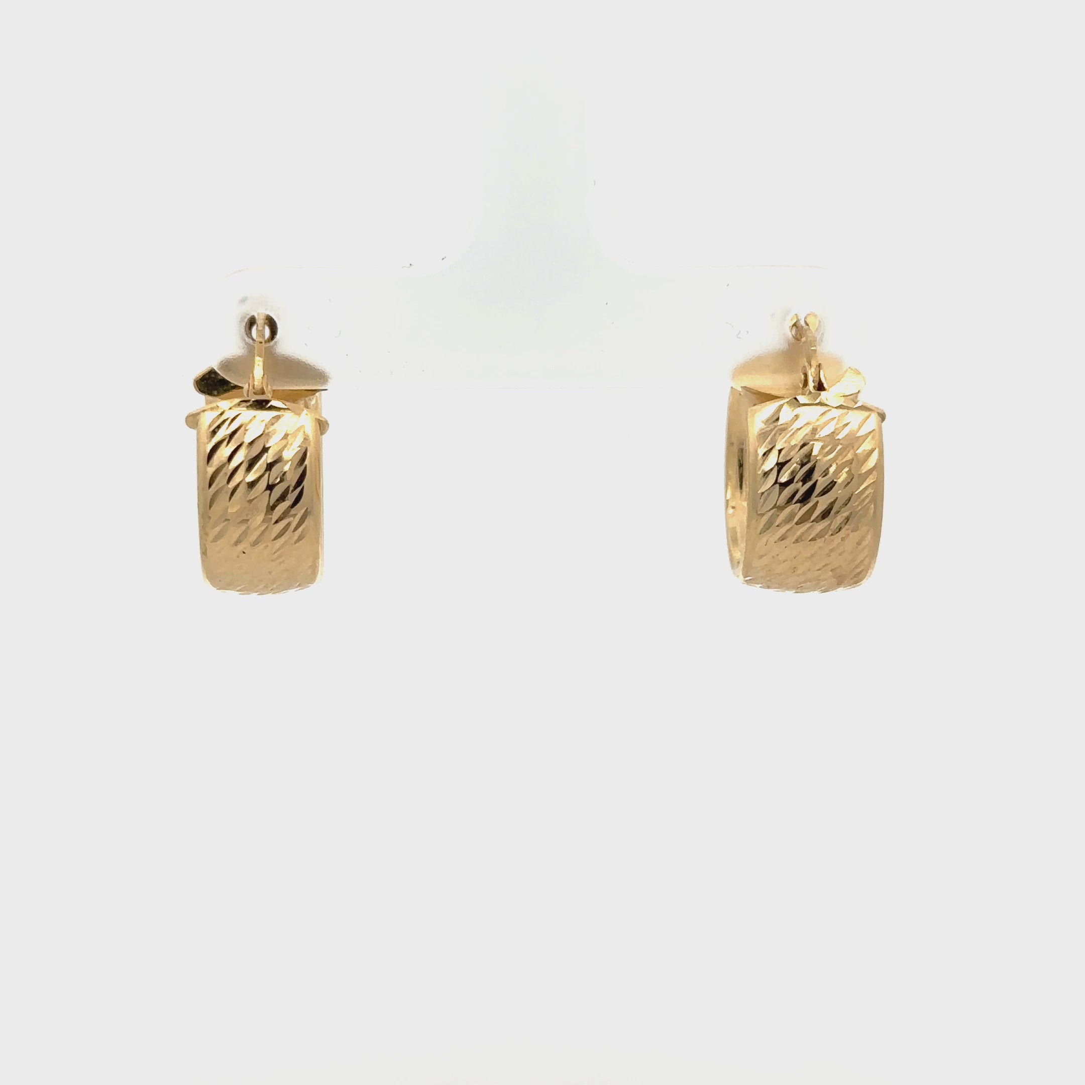 WD875 14kt gold diamond cut hollow Huggie Hoops