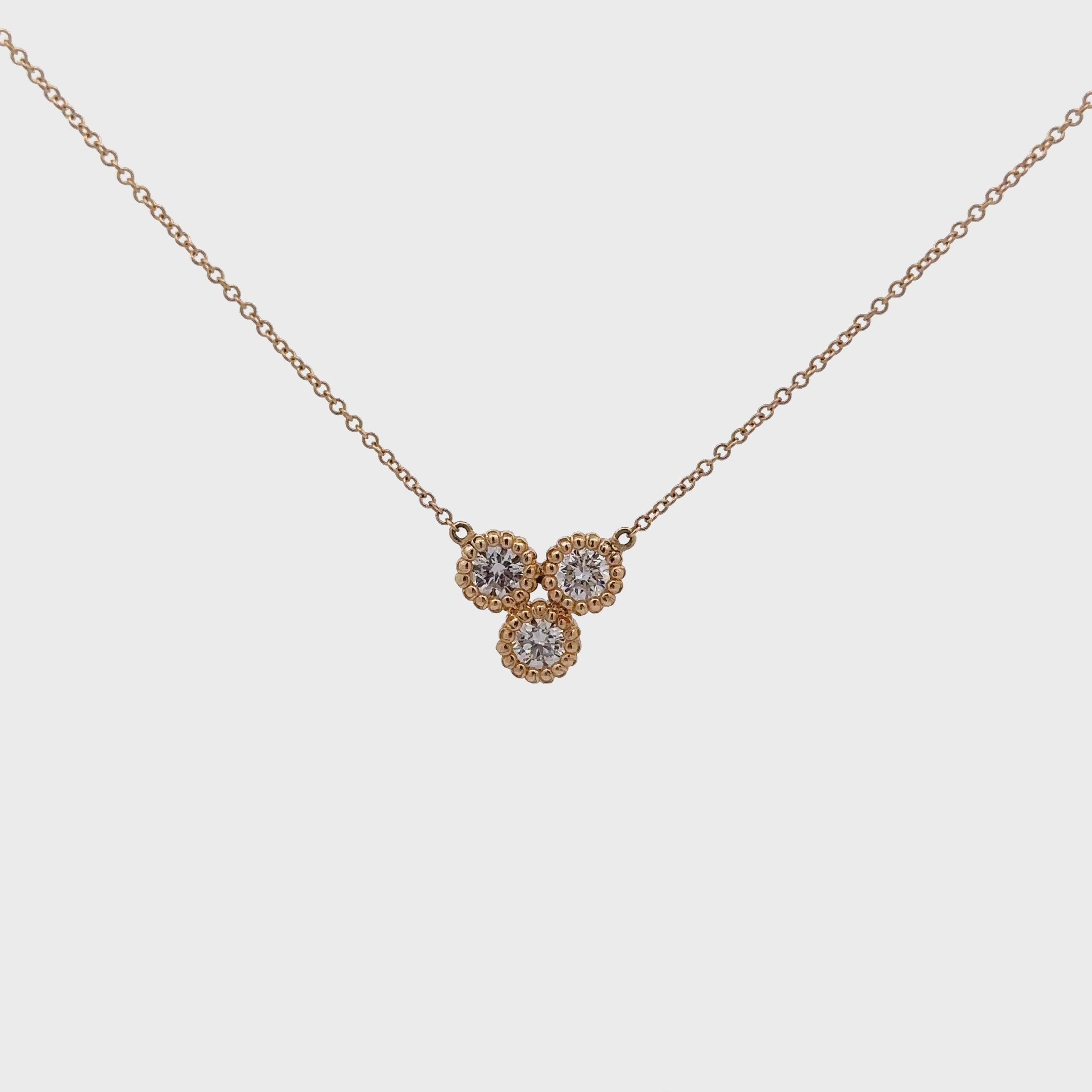 WD937 14kt 3 bezel diamond necklace total .60ct