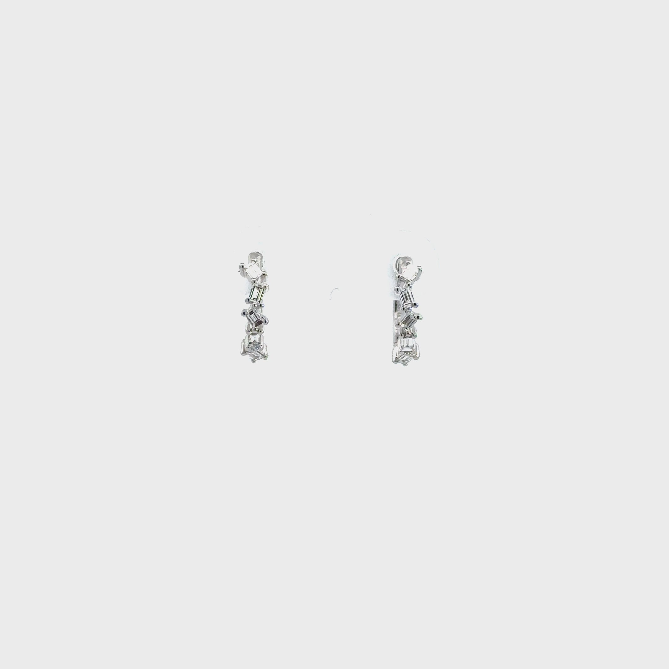 14kt gold with baguette diamonds around the outside surface of the ring. When facing forward and fitting snugly.